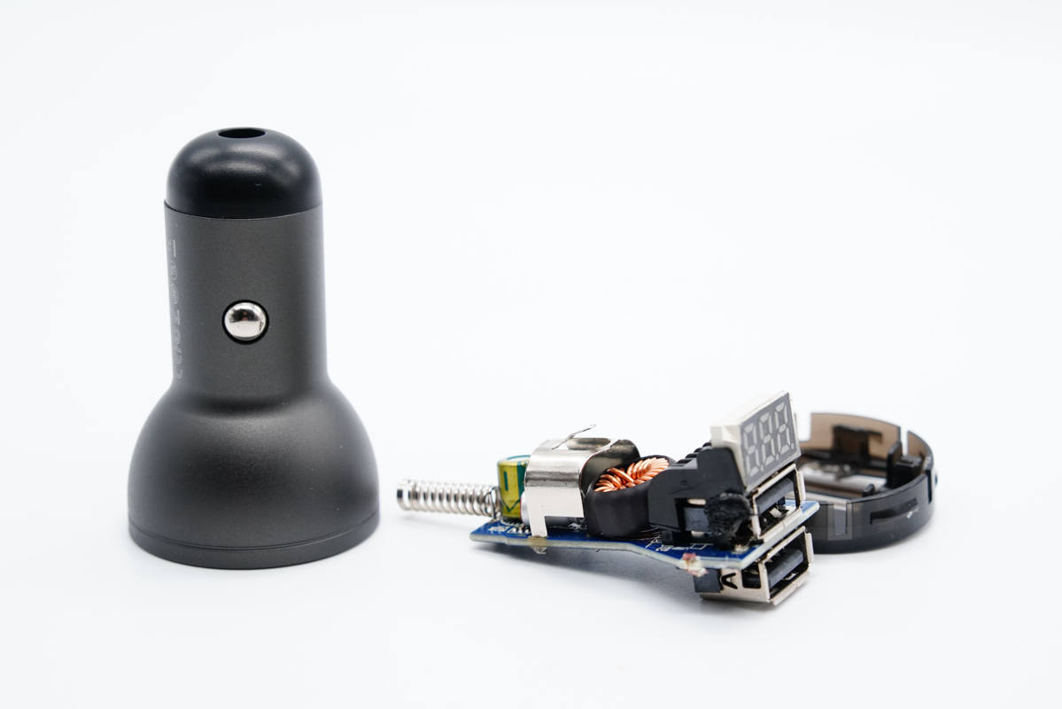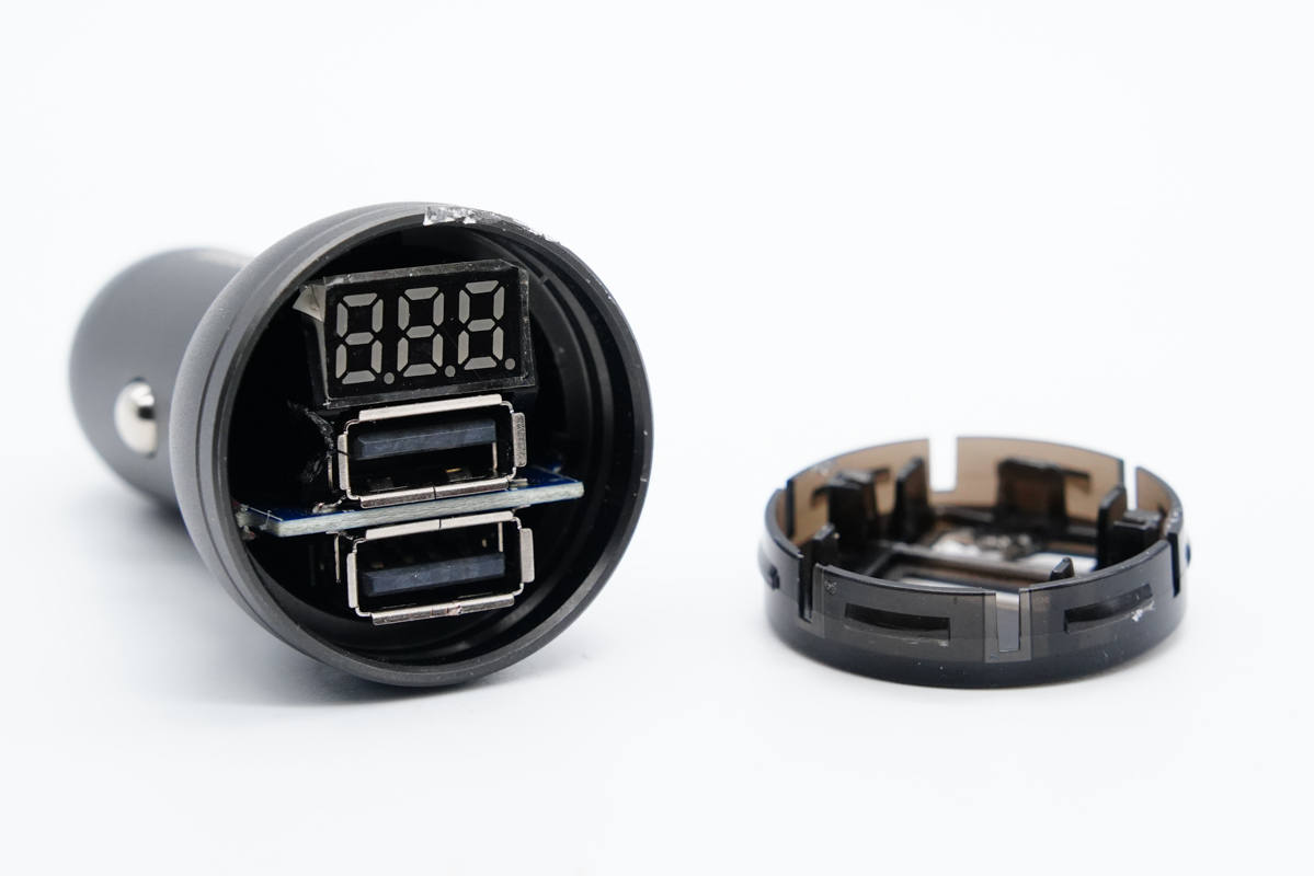 最近充电头网拿到了倍思一款双A口数显车充,主体外壳为铝合金材质,保护性强经久耐用。配备两个USB-A口均支持5V2.4A输出,可分别拿来给手机和行车记录仪供电。下面我们就对这款车充进行拆解,看看其内部设计情况。