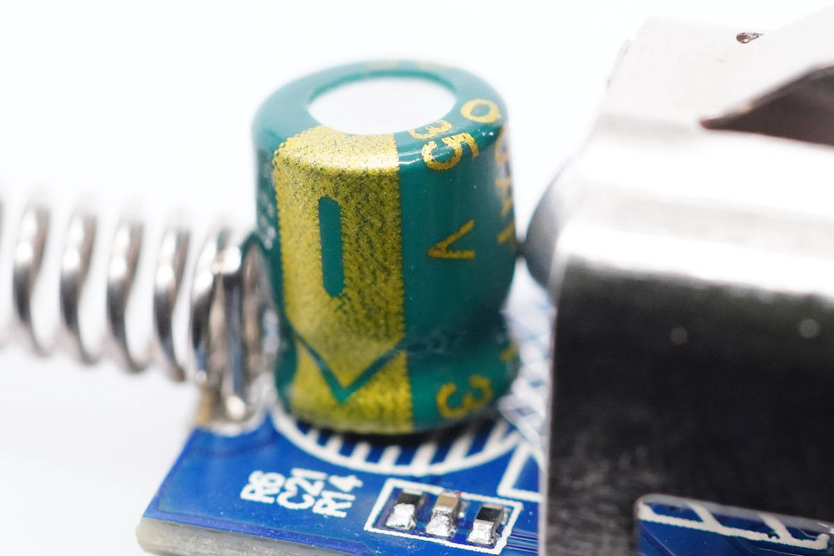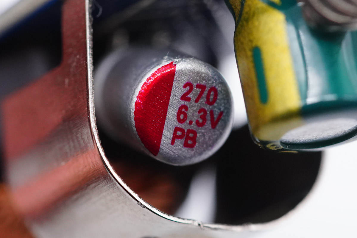 降压输出滤波固态电容特写,规格为6.3V 270μF。