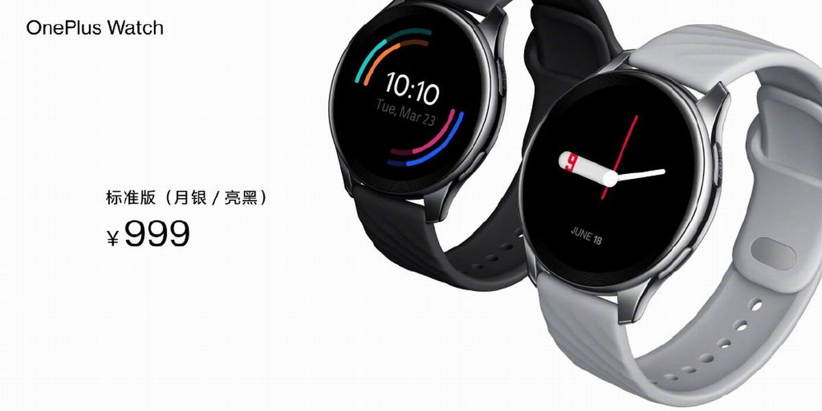 最后是价格公布环节,一加手表标准版共有月银、亮黑两种配色可选,售价为999元。