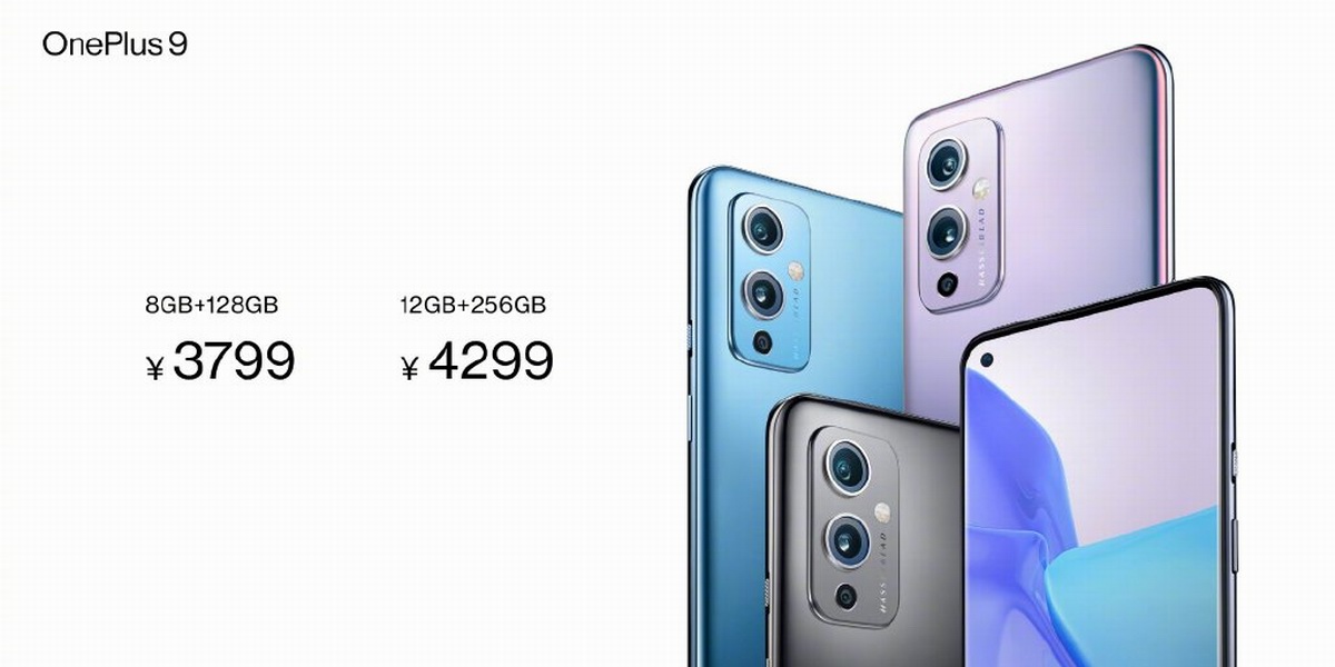 一加9采用骁龙888旗舰处理器,哈苏三摄影像系统,6.55英寸2400 x 1080柔性直屏,共有黑曜、鲸蓝、紫翼三款配色三色可选,标配65W有线闪充。分为两个容量配置,8GB+128GB售价3799元,12GB+256Gb售价4299元。