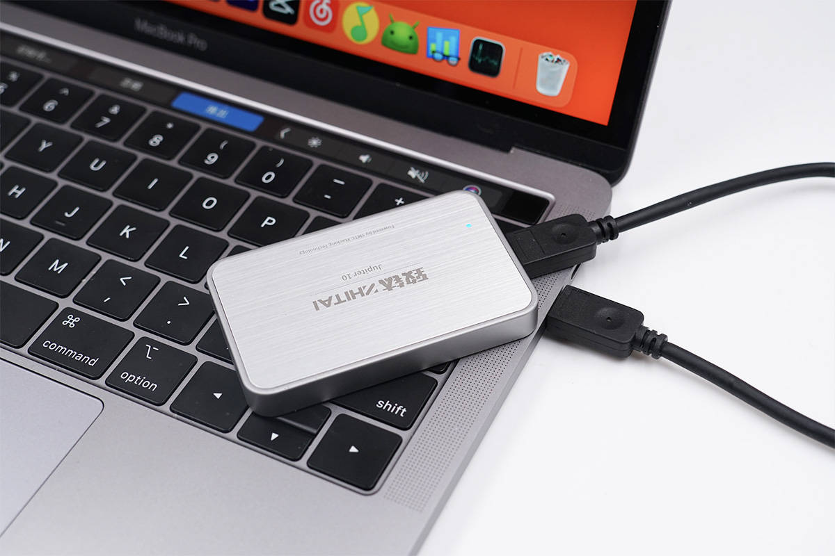 致钛木星10固态硬盘的壳体使用锌合金框架+铝合金铭板全金属设计,这有别于市面上常见的的塑料制品移动硬盘,为用户提供更加坚固的数据存储保障。毕竟将固态硬盘里面的资料“摔没”的现象还是存在的。