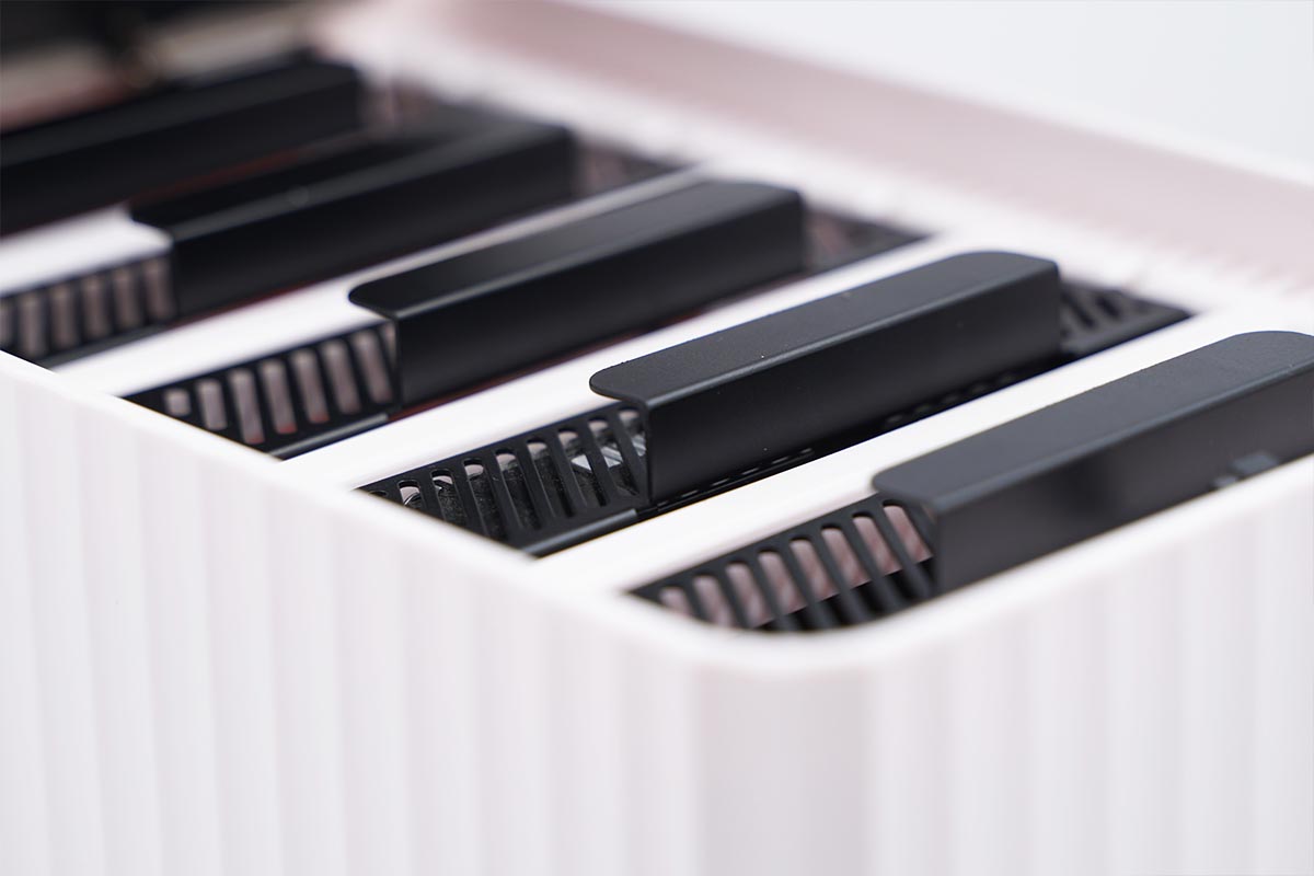 除了在底部带有主动散热风扇和大面积的散热孔之外,在顶盖的四周也是可以起到散热的作用的,全面散热,安全工作。