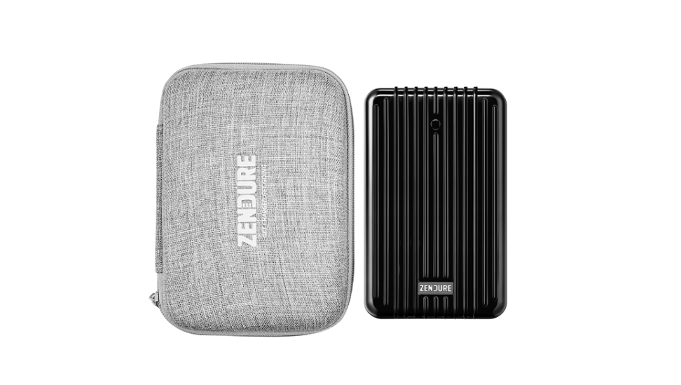 收纳包正面印有“ZENDURE”的logo,以灰白色为主,细密针织覆盖,手感柔顺,也耐脏。体积方面比征拓上代Super Tank充电宝大上一圈。