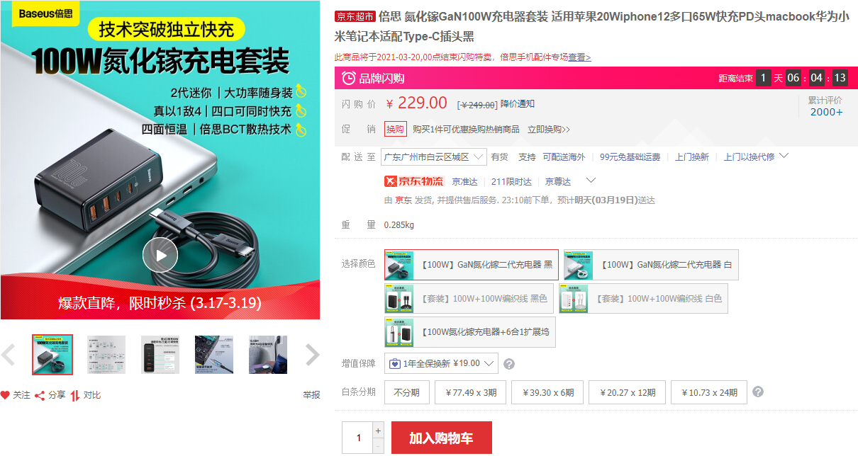 2C2A支持100W输出功率,倍思氮化镓充电器评测