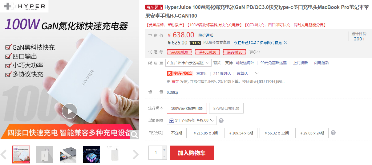 HYPER JUICE 100W 2C2A氮化镓充电器当年由HYPER JUICE在众筹平台Kickstarter上推出,是全球首款100W氮化镓快充充电器,其配备折叠插脚,并具备2A2C四个接口,一个充电器就能将手机、平板、笔记本电脑等数码设备全部搞定,首次实现真正意义上了大功率小体积,性能强悍。