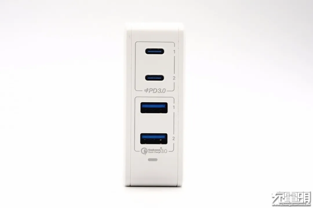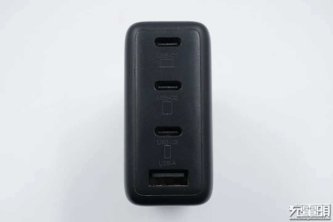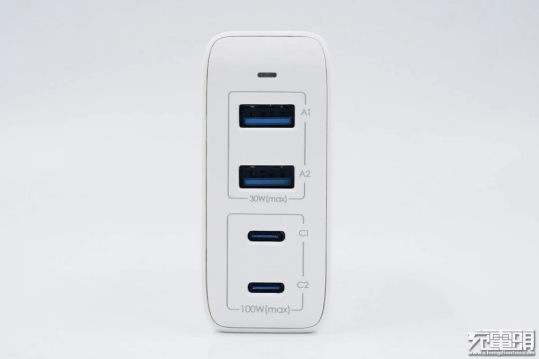 性能方面,USB-C1+USB-C2最大输出100W,USB-A1+USBA2最大输出30W。各个接口兼容协议几乎囊括了市面上的主流快充协议(OPPO、vivo私有协议除外),在手机兼容性测试中表现也很出色。四个接口的搭配足以满足绝大多数人的需求,非常方便。多口同时输出的搭配也符合包装上的标识。