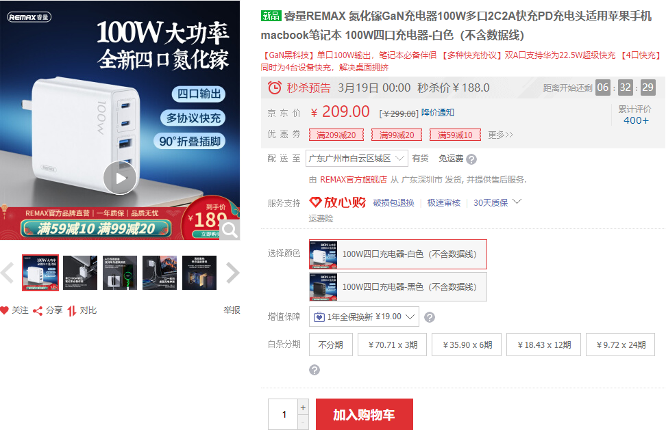 挑战全能,战神出征:REMAX 100W 2C2A氮化镓充电器深度体验