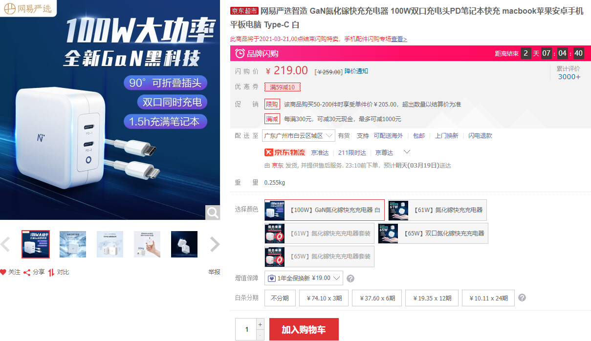 网易严选的产品迎合了消费升级的风潮,以平价甄选好产品,一般来说网易出品都不错。这款100W充电器也是如此,外观简洁,体积小巧,加上双USB-C以及可折叠插脚,可以说狠击用户痛点。
