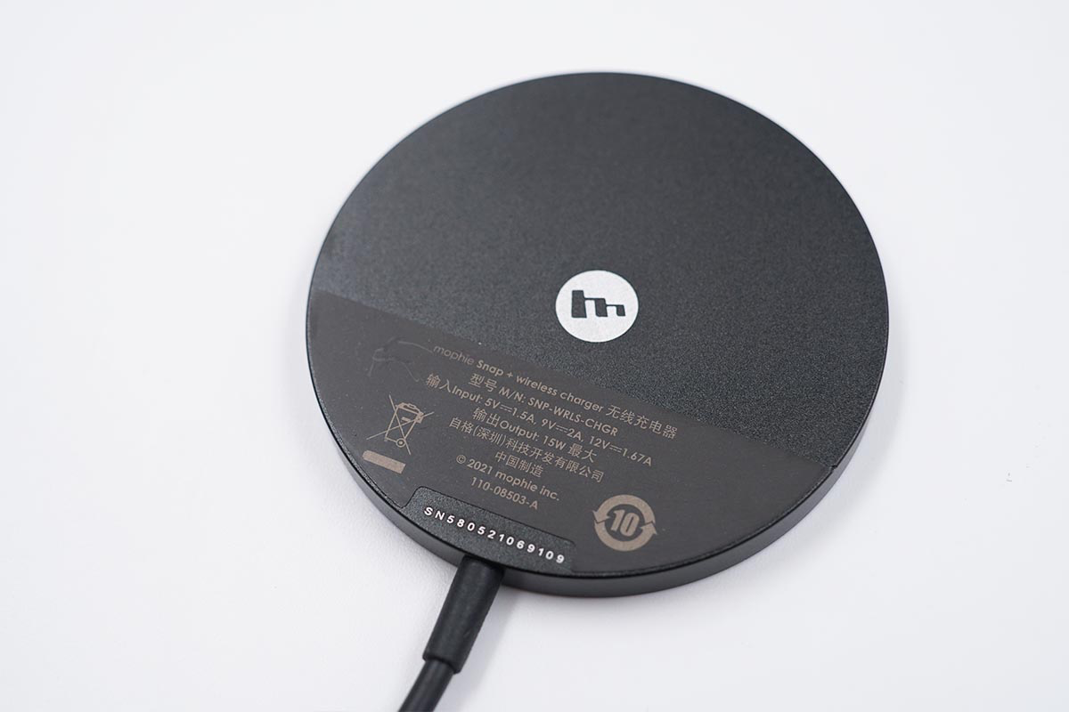 包装盒内除了mophie MagSafe磁吸无线充电器之外,额外还配备了一个磁吸线圈,这样就可以让其他自身不带磁铁的手机也可以相同磁吸充电体验了。