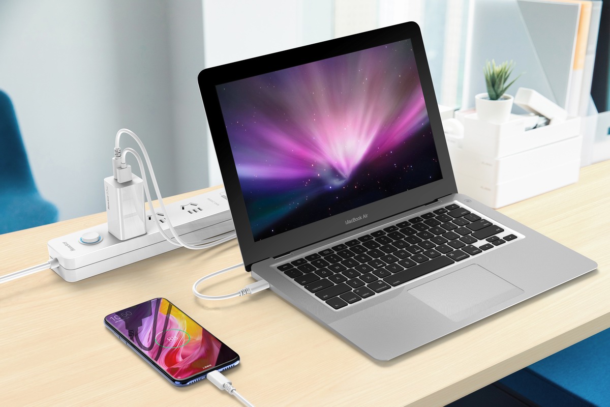 面对双设备同时需要充电的需求,航嘉新品65W氮化镓充电器可以双口同时输出,甚至可以笔记本与手机一起充电,无须用户中途插拔替换,双口输出支持双手机、笔记本+手机、手机+耳机、手机+平板等不同设备同时使用,使用起来更加舒心。