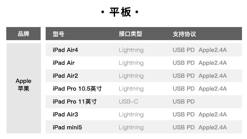 大功率用电设备充电头网评测室目前现有iPad7款,从iPad mini到iPadOS、从Lightning接口到USB-C接口,协议覆盖Apple2.4A和USB PD。