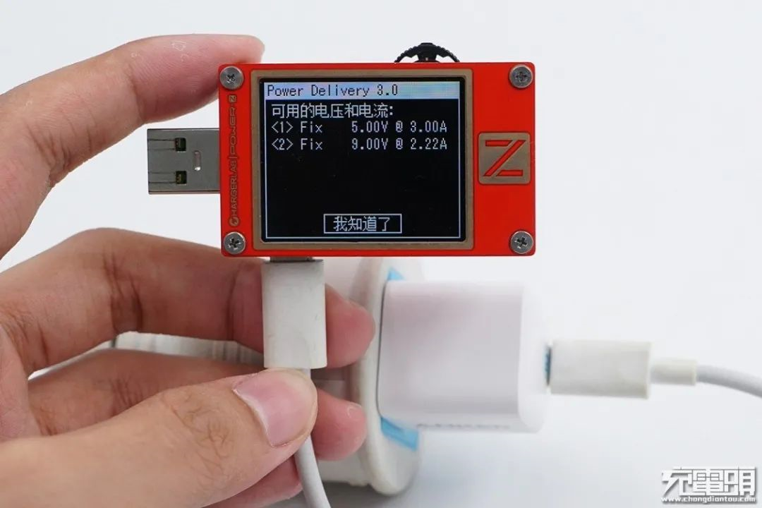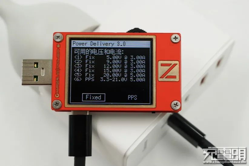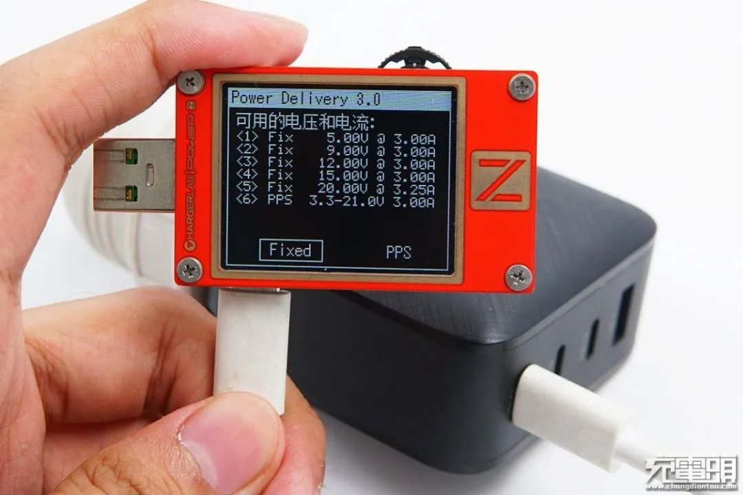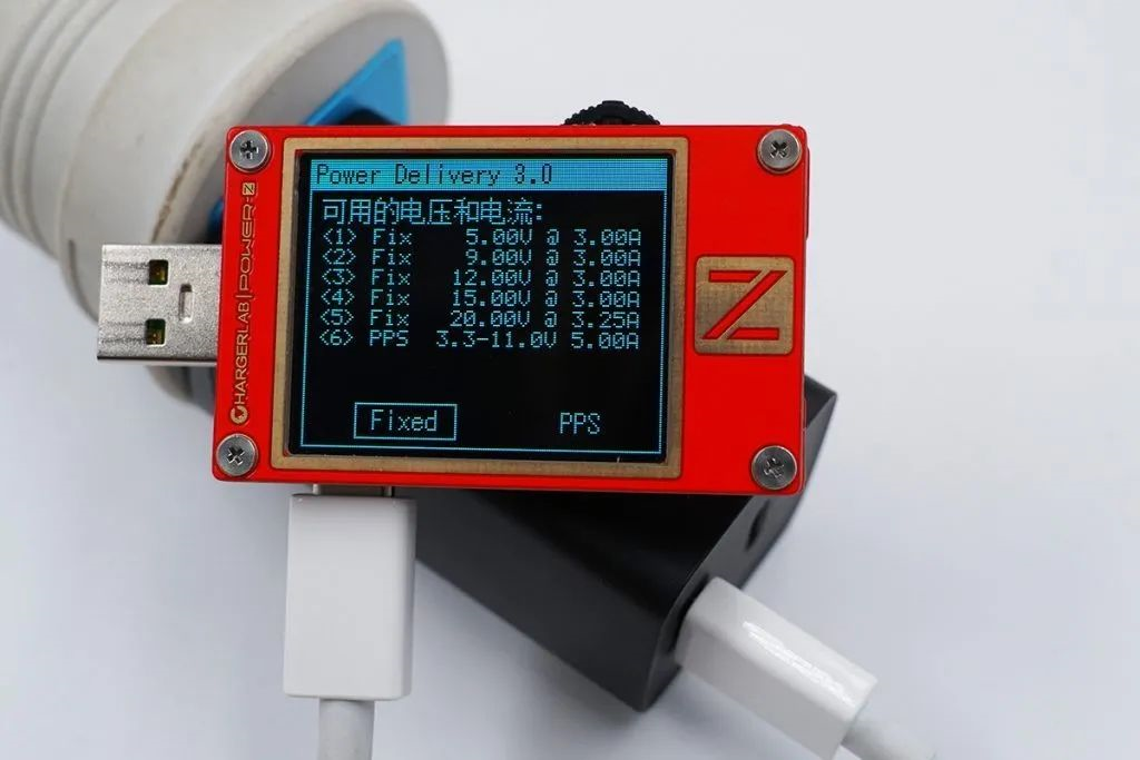 ChargerLAB Power-Z KT001测试仪对ANKER PowerPort Atom PD 1 GaN充电器进行检测,这次我们看下充电器的输出档位有哪些。从KT001测试仪的显示屏中可以看到该款充电器支持5V/3A、9V/3A、15V/2A、20V/1.5A四个USB PD输出档位,PD快充版本为3.0,拥有15V、20V高压输出无论是充手机、还是笔记本,它都能胜任。