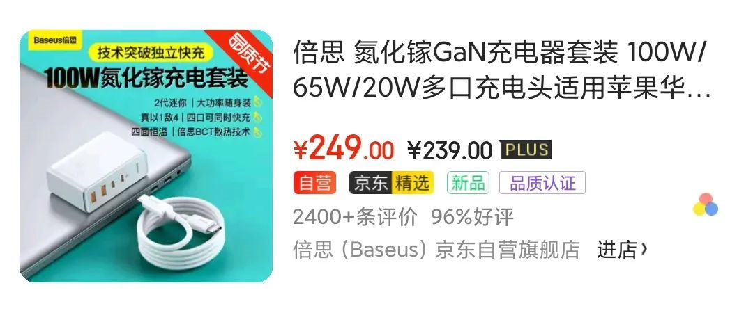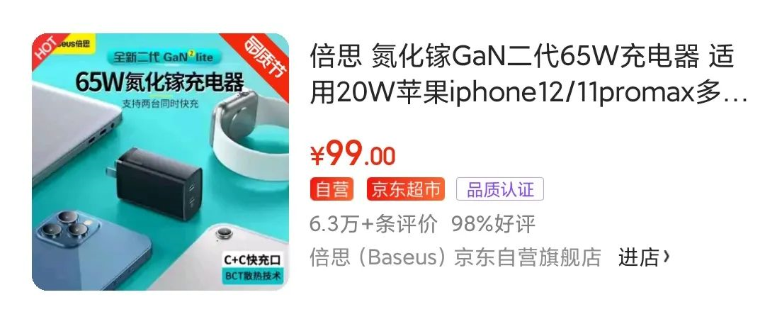Baseus倍思是国内最早涉及氮化镓充电器领域的品牌之一,目前旗下氮化镓充电器品类丰富,功率段覆盖45W-120W之间,此前销量就已率先突破百万台量级。目前倍思推出的大功率氮化镓充电器从功率到接口都非常丰富,按照功率区分有45W、65W、100W和120W;按照接口配置区分有2C1A、2A、2C、1C1A以及2C2A等,相信无论是对接口配置还是输出功率有要求的用户都可以选择到合适的倍思充电器。