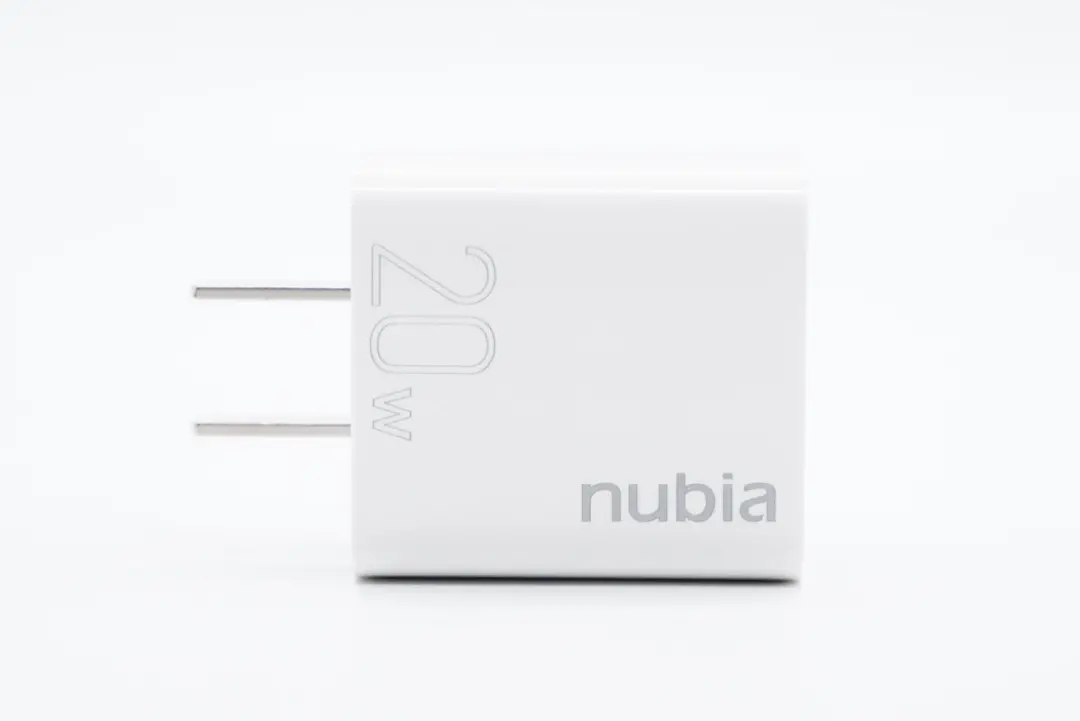 努比亚这款充电器采用直板造型设计,腰身亮面处理,正面印有nubia品牌和20W功率字样。输入输出面为切面,顶部正中是USB-C母座。支持5V3A,9V2.23A和12V1.67A三档输出电压,支持3.3-5.9V3A和3.3-11V2.2A两组PPS输出。充电器由上市公司澳海科技旗下子公司奥达电源生产。