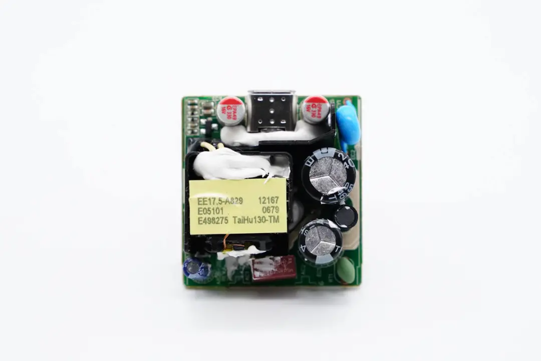 通过拆解发现,充电器内部初次级之间设有隔离板,白胶加固。