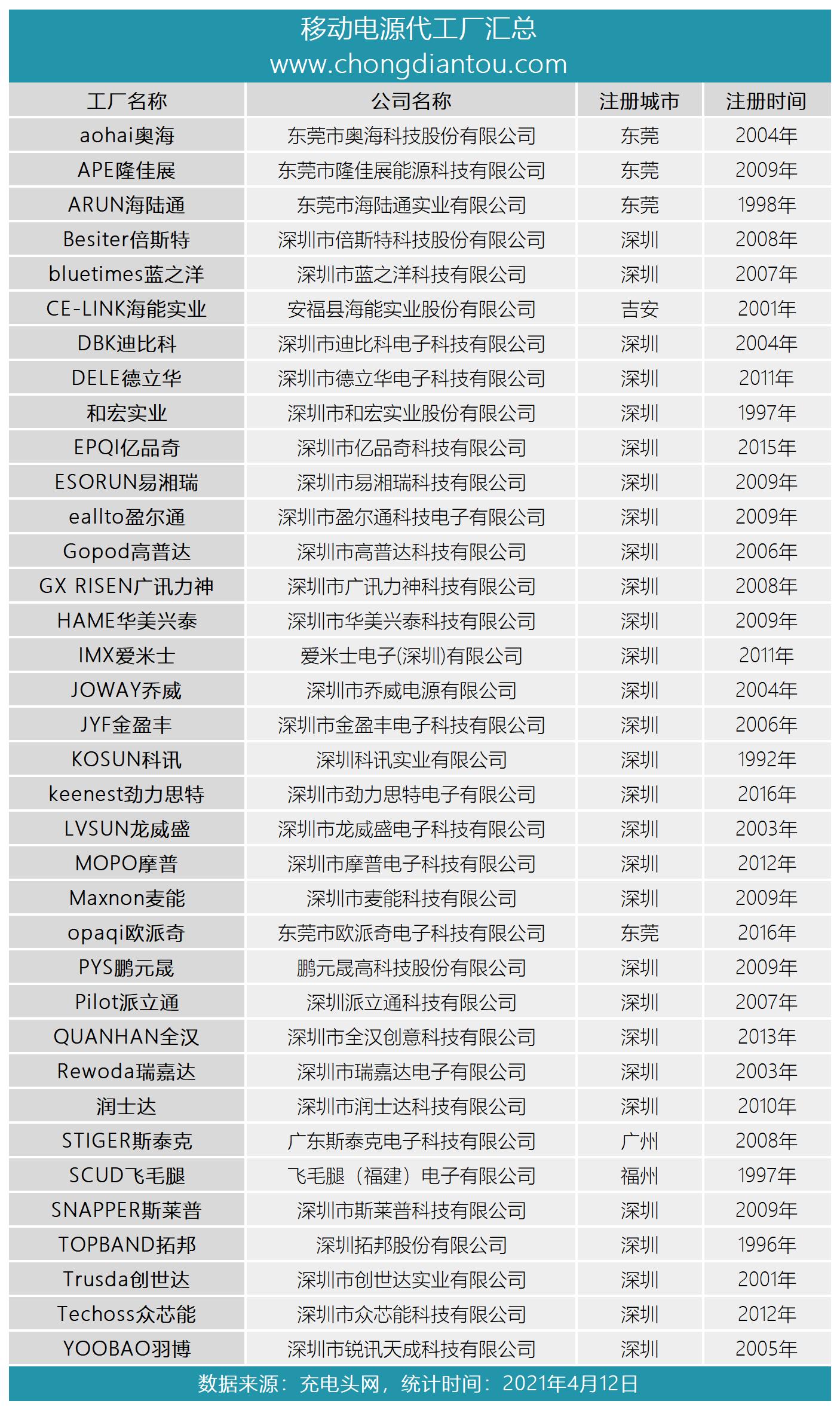 为此,充电头网经过多方统计,整理汇总了35家移动电源代工厂名单,下面分享给大家。仅按英文首字母排序,排名不分先后。