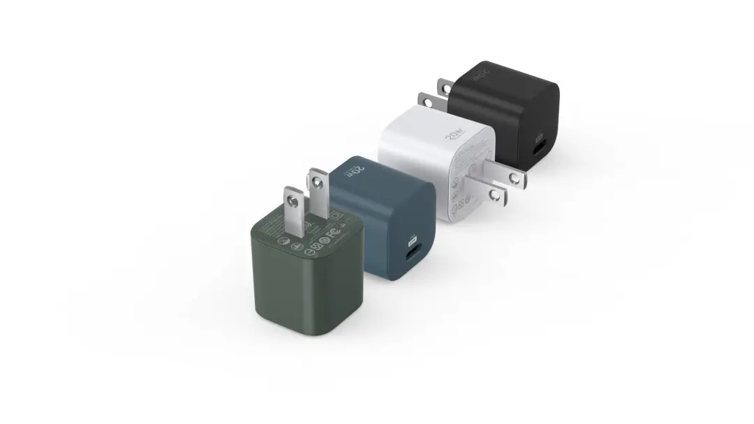 辉越光电推出的mini 20W PD充电器体积只有苹果5W大小,并且还在散热上下了大功夫。充电器有三色可选,分别是白、黑、蓝、绿,对应iPhone 12系列的手机颜色。