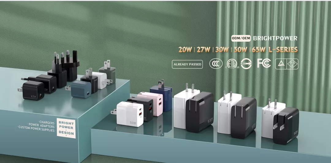 辉越光电推出的10款USB PD充电器,提供单C口、双C口以及1A1C双口等多样化的接口类型,产品通过多种认证,并且配备多国插头,目前均已经量产出货,可接受ODM/OEM订单。