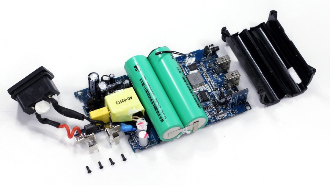 充电头网通过拆解了解到,产品内部采用了南芯SC8913高效率同步双向降压转换器、力生美次级同步整流芯片LN5S21A、芯电元PE15D11保护MOS管和英集芯锂电池保护IC IP3005A等。打开机身壳我们看到基本上所有的元器件都打上硅胶,增强了内部稳定性;此外电芯覆盖有塑料壳加强保护并配有热敏电阻实现温度监控,可靠性和稳定性都很好。