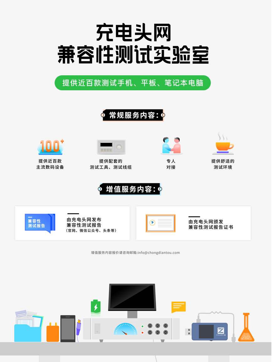 目前充电头网评测室共有近百款硬件设备,企业如需兼容性测试 可以联系 info@chongdiantou.com 了解服务详情。