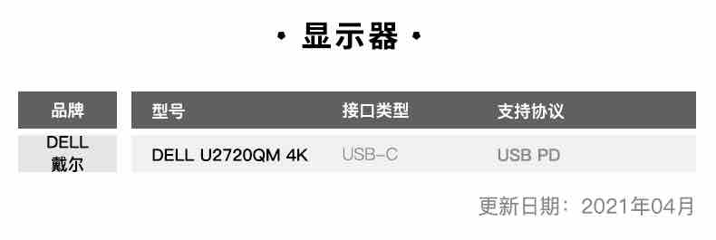 戴尔的U2720QM 4K显示器,自带USB-C充电接口,支持90W反向PD快速充电。