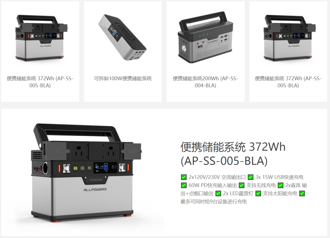 奥鹏能源的户外电源可根据容量分为大储能、中储能、小储能,有100W便携储能系统、200Wh储能系统、372Wh储能系统等,大部分产品均加入了USB-C充电接口,并支持60W双向快充。