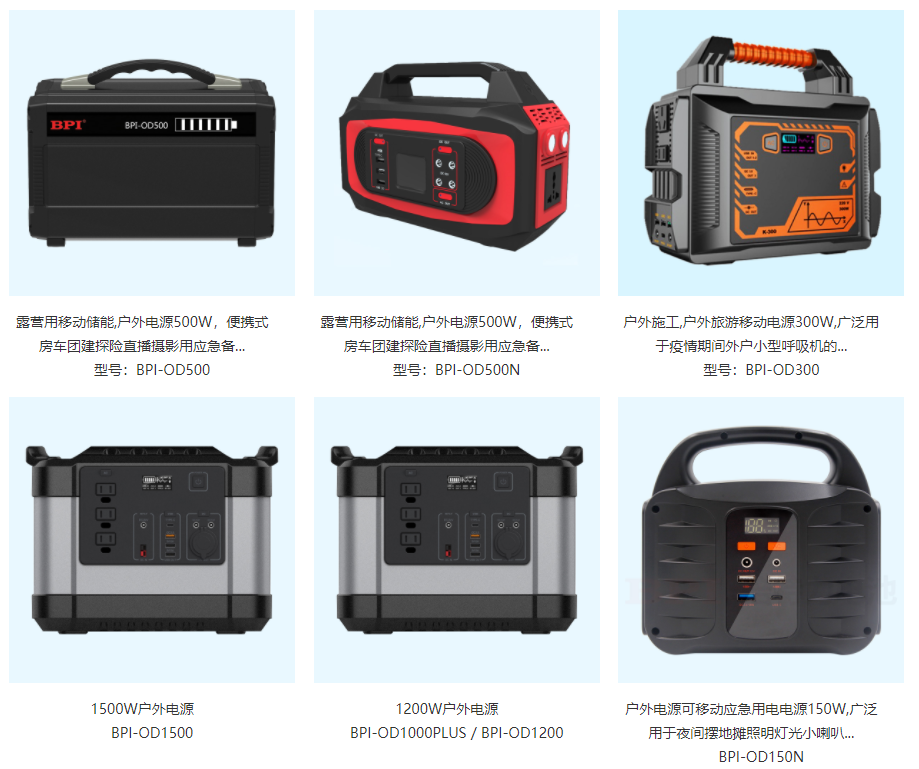 倍特力在户外电源领域推出了众多产品,形态各异,功能各有所长,比如针对呼吸机应急用的150W小型户外电源、可用于摆地摊场景的150W户外电源、摄影直播应急用的500W户外电源、支持1200W、1500W大功率输出的户外电源等;并且支持客户定制。