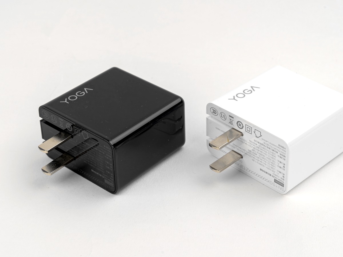 YOGA 65W双口氮化镓充电器共有黑白两种配色可选,与市面上沉闷的充电器不同,YOGA 65W双口氮化镓充电器壳体采用多种工艺打造而成,防火塑料注塑成型后喷涂UV高光亮面涂层,再烫银银色“YOGA”LOGO,质感精致靓丽。