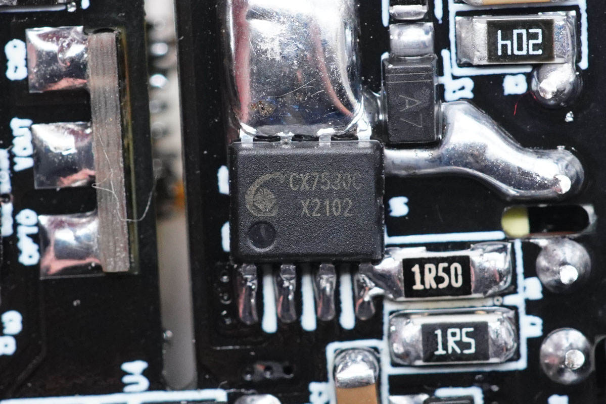 次级采用内部集成同步整流管的多模式同步整流器CX7538D,其内部集成100V耐压,导阻10mΩ的高性能同步整流管,支持CCM/QR/DCM工作模式,最高支持200KHz工作频率,静态电流低,相比传统肖特基整流方式可提高2-6%效率,支持3A输出电流。CX7538D漏极大面积露铜加锡,辅助散热。