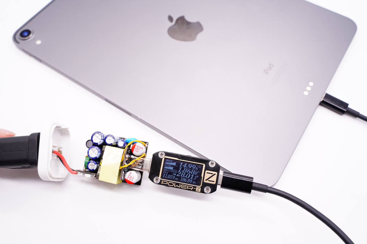 为iPad Pro 2018 11寸充电,电压14.99V,电流1.87A,充电功率约为28W。