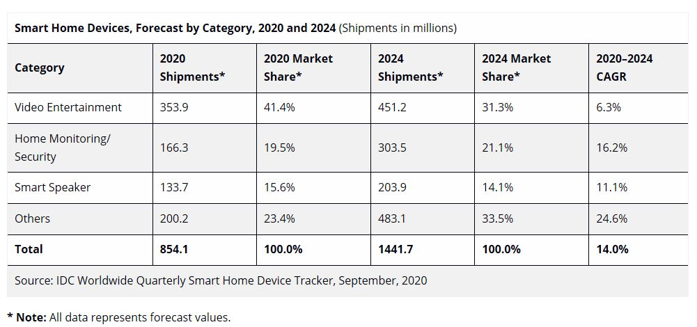 快充市场到底有多大?」中,2020 年智能家居设备出货量将达到8.54 亿台。