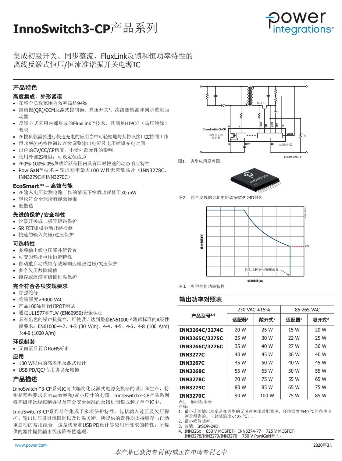 INN3278待机功耗小于30mW,支持次级整流管短路保护,支持同步整流管栅极开路检测,具有快速的动态负载响应和输入欠压/过压保护,并且内置完善全面的保护功能,适用于USB PD快充适配器。