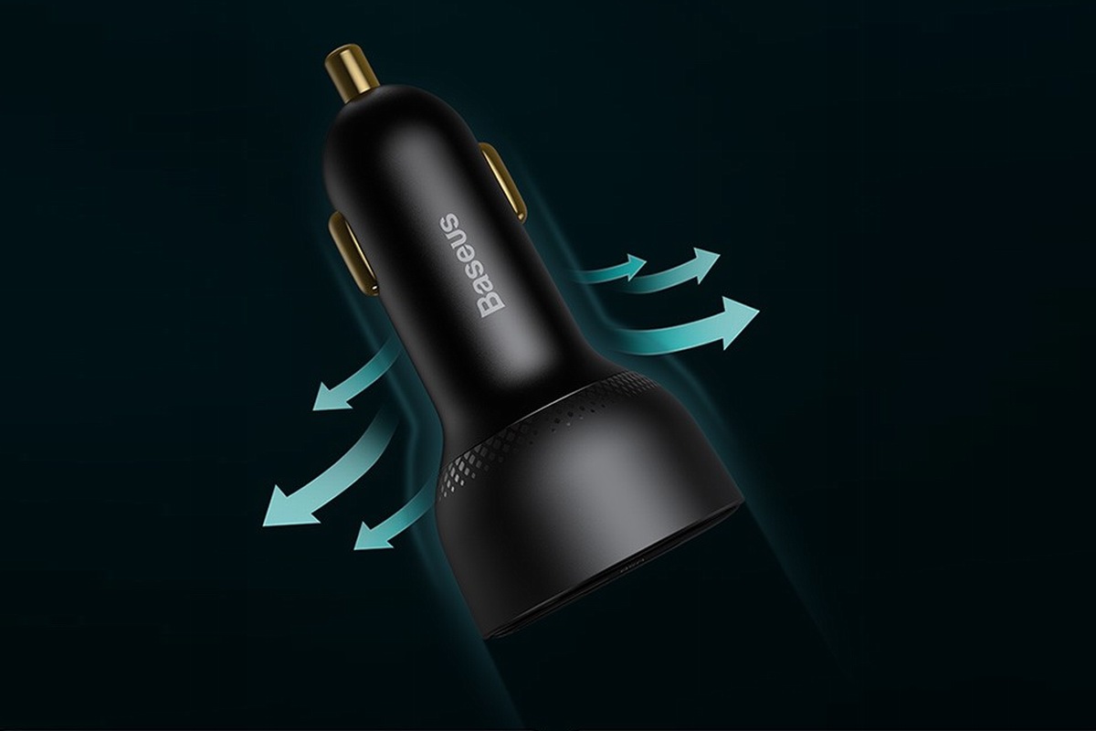 倍思100W尊享车充拥有双输出口,USB-C单口使用时最大输出可达100W,满足笔记本、平板、手机等主流数码产品使用需求。USB-A接口支持多种快充协议,可以对华为设备提供SCP低压直充,充得快又不烫。并且支持双口同时输出,通过智能功率分配调整为65W + 30W输出配置,双设备同时享受快充,恢复电量无需等待。
