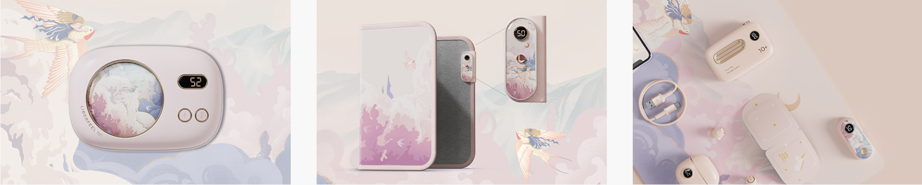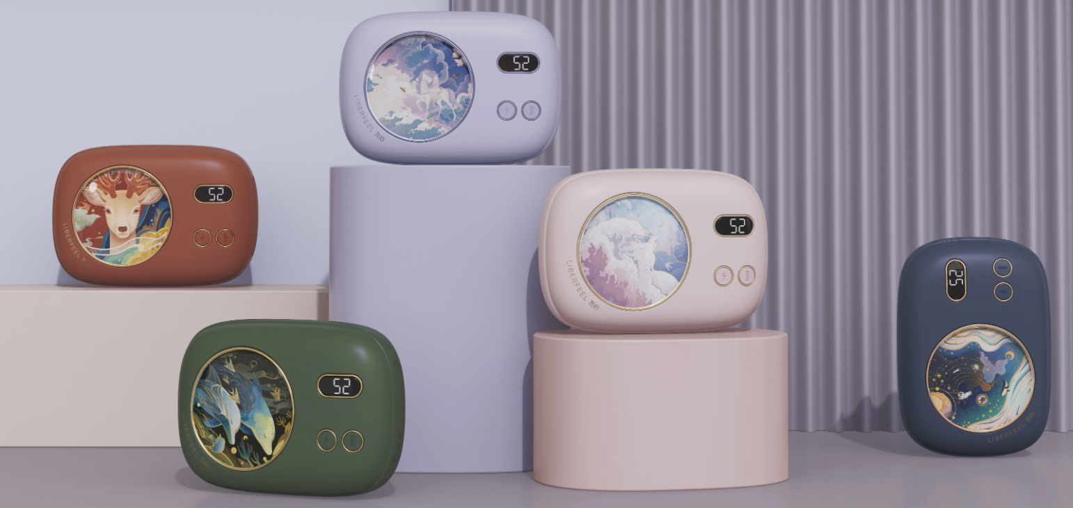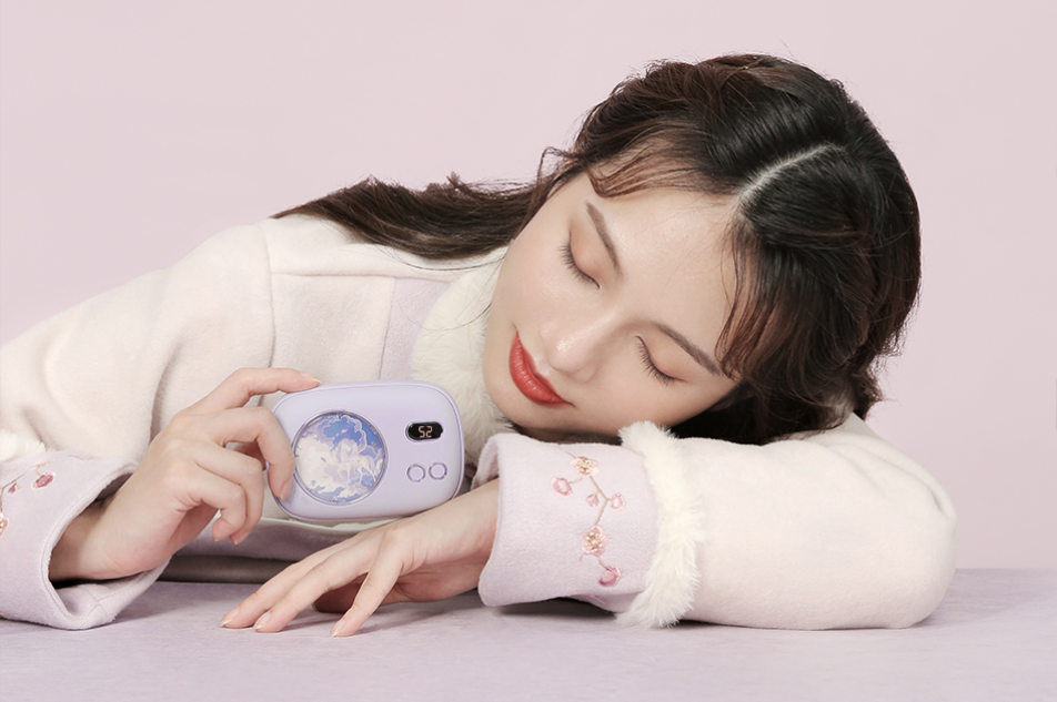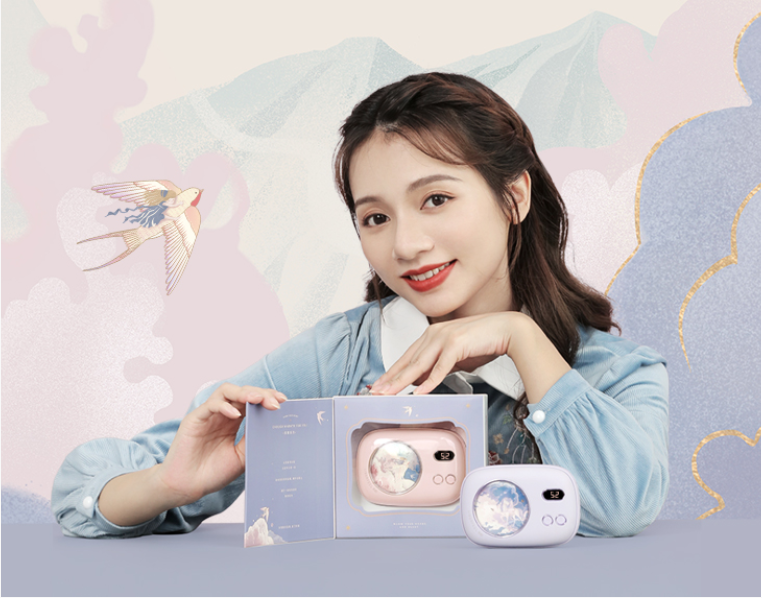 说完耳机,还有一件非常漂亮的产品——暖手充电宝,既是暖手宝也是充电宝,10000mAh大容量,一物两用,想法比较奇妙。
