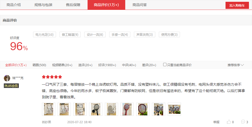再看京东,1万+的评价数,96%的好评度,销量估计不比天猫差。