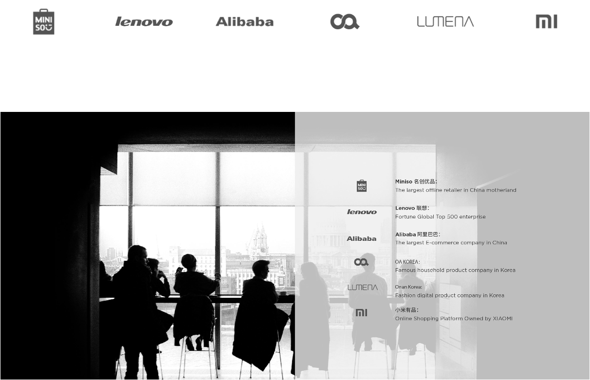 在合作伙伴中,除了联想、阿里巴巴、小米这样国际化程度非常高的企业外,还有OA KOREA、Onan KOREA、Costco、Airmate专业的外企。