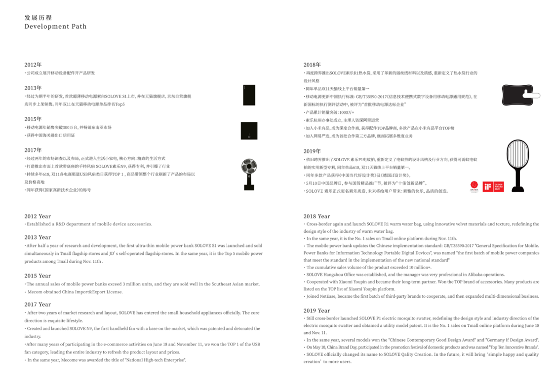 素乐质造SOLOVE是觅客科技旗下一个源自简约美学理念的消费类生活品牌,自 2013 年创立起,公司秉承“让好用更具美感”的企业使命,通过汲取全球消费电子行业领先品牌公司的品牌管理体系特点,结合自有商业模式运营情况,建立了多品类、多品牌交叉发展的品牌体系。