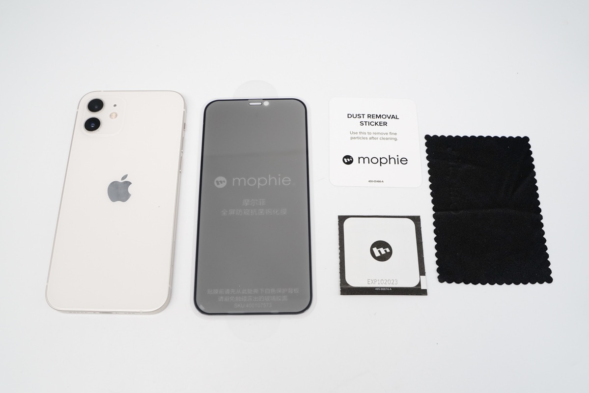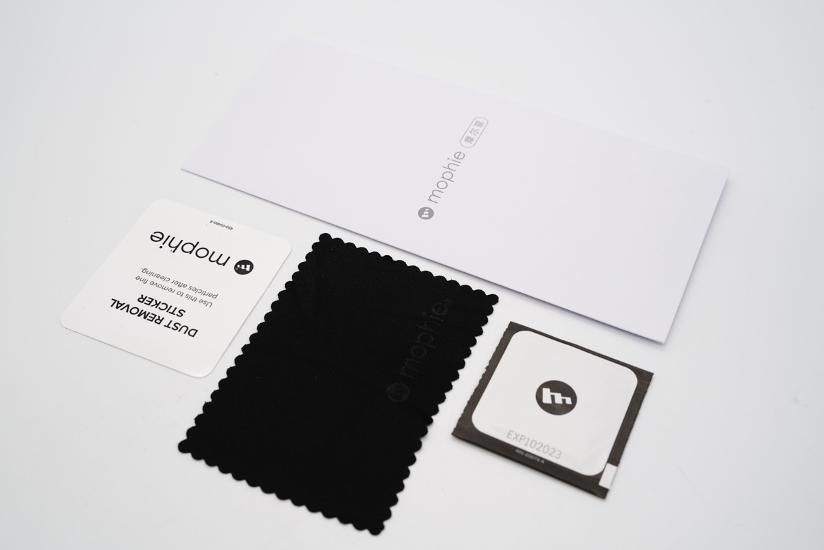 简单的介绍了一下mophie全屏防窥抗菌钢化膜,下面直接实操贴膜,准备好酒精擦纸、除尘贴以及绒布。