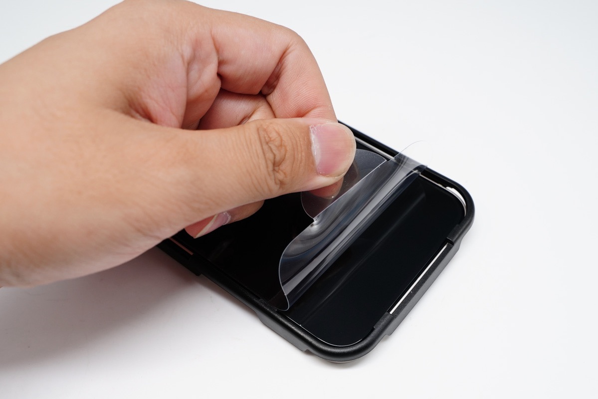 最后,揭开钢化膜表面的保护膜,这样整个贴膜的工作就全部完成了,为手机屏幕新增了一层防护。
