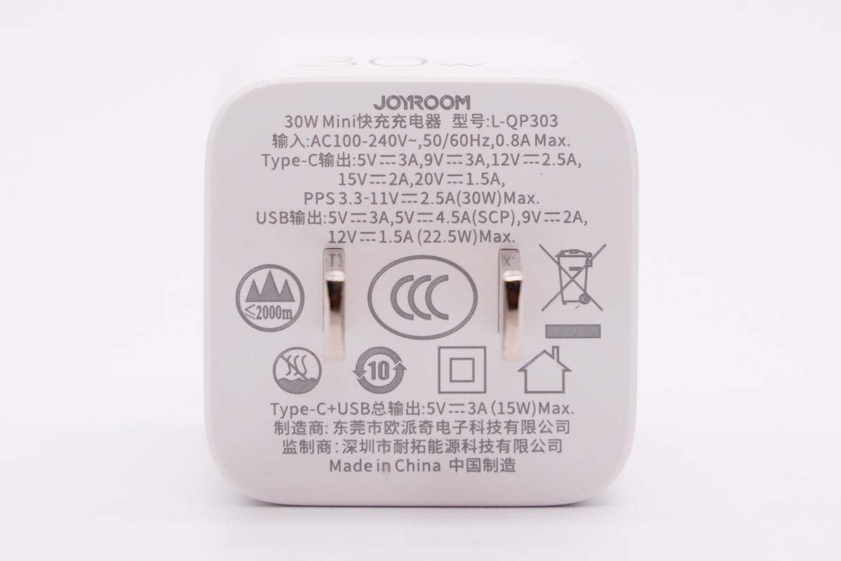 近期充电头网拆解了JOYROOM机乐堂一款20W 1A1C双口快充充电器,吸引了不少小伙伴的关注。今天继续和大家分享机乐堂一款30W快充的拆解,这款充电器同样配备1A1C接口,分别支持18W QC和30W PD快充,A口还支持华为的22.5W SCP快充,实用性强。下面就来看看充电器的用料做工如何。