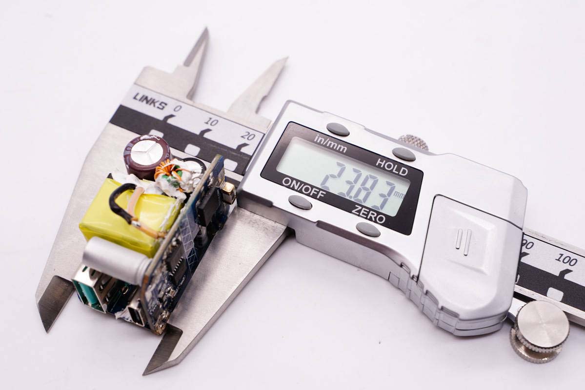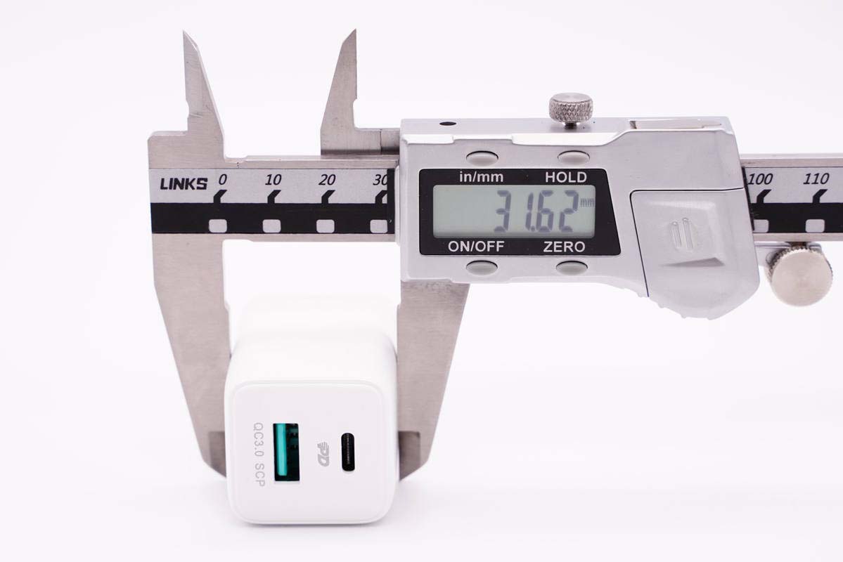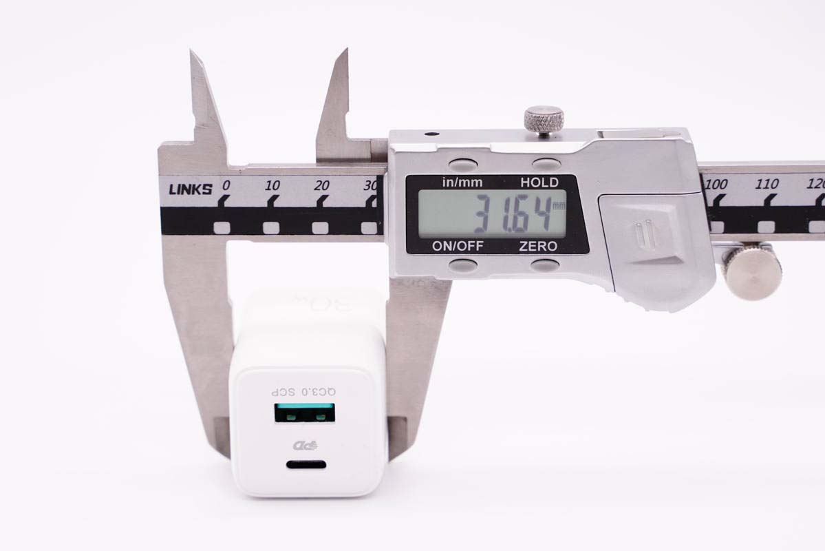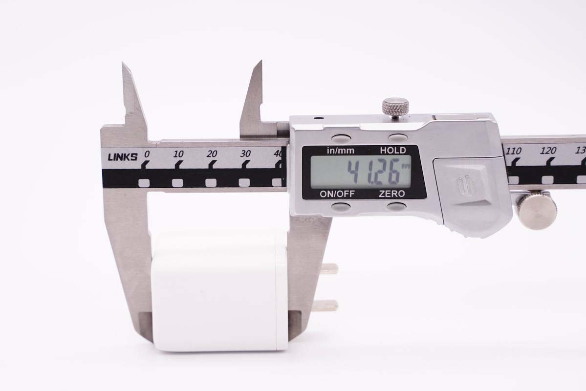 使用游标卡尺实测充电器机身高度为41.26mm。