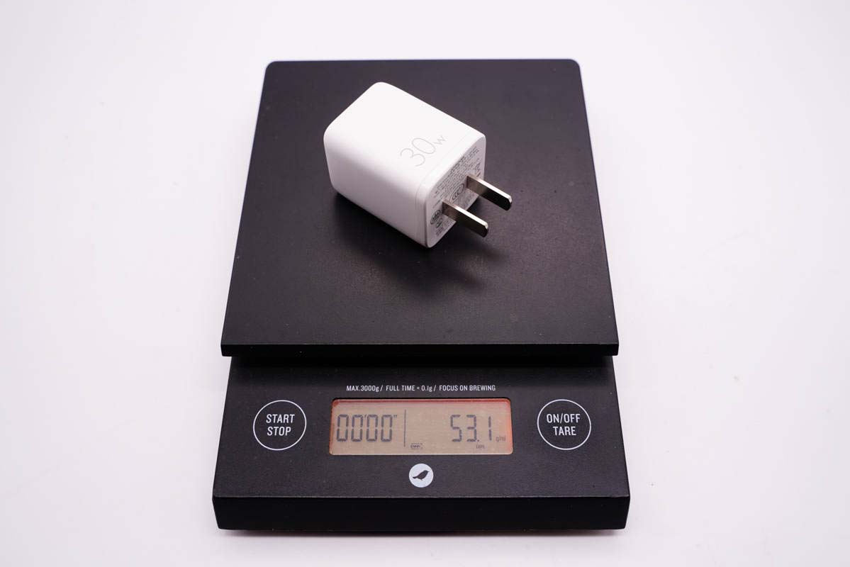 充电器采用小方柱造型设计,整体非常简洁,机身壳表面哑光处理,各面过渡圆润。