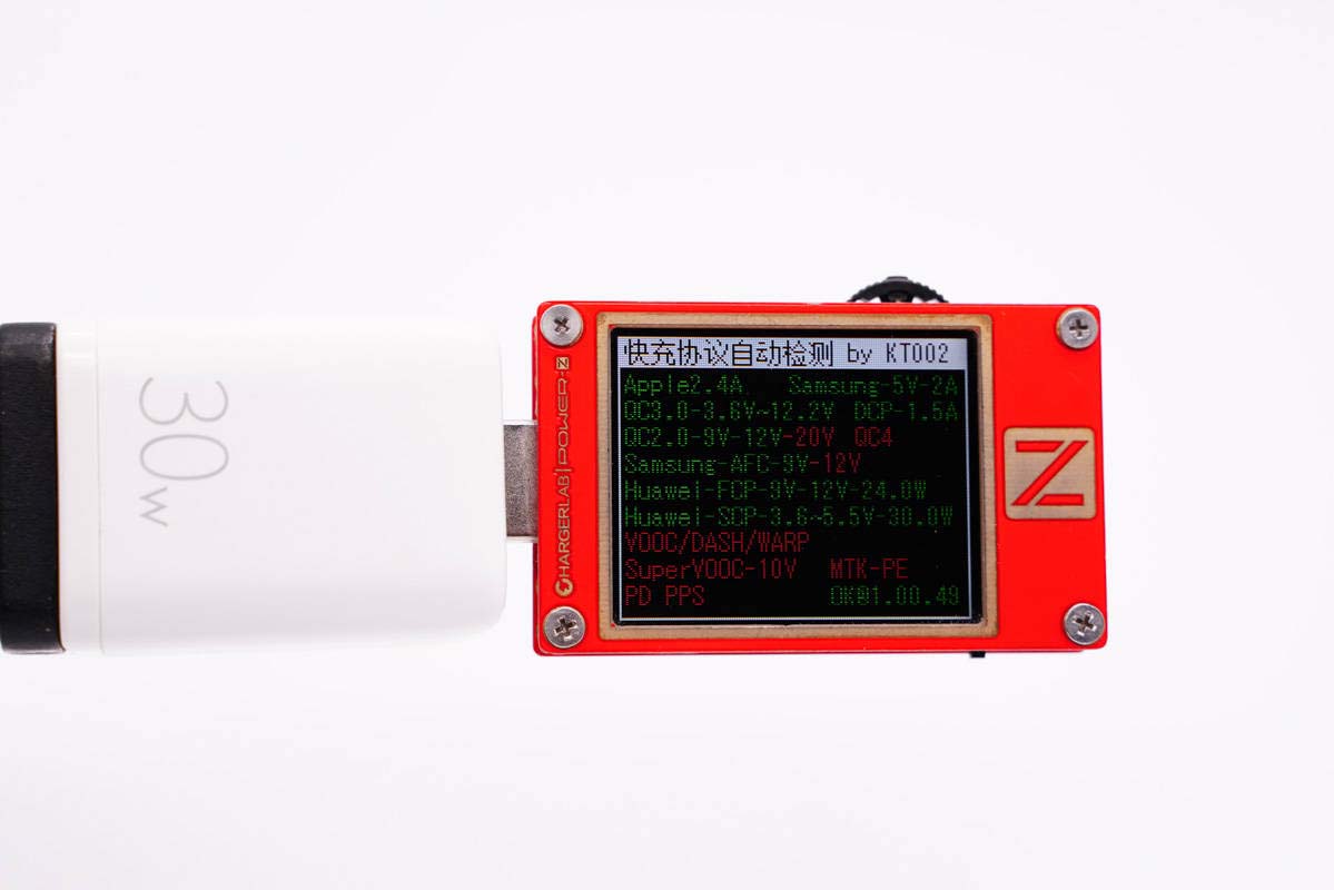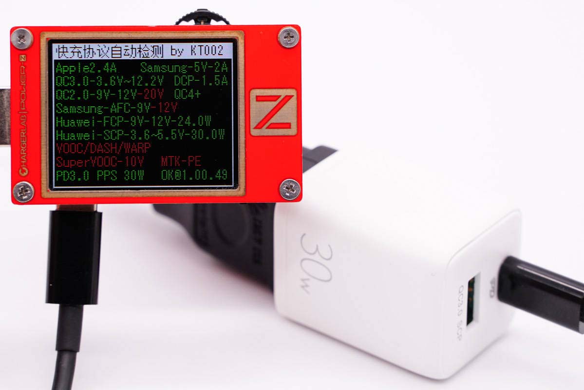 使用ChargerLAB POWER-Z KT002测得USB-A口支持Apple 2.4A、Samsung 5V2A、DCP协议,以及QC2.0/3.0、AFC、FCP、SCP快充协议。
