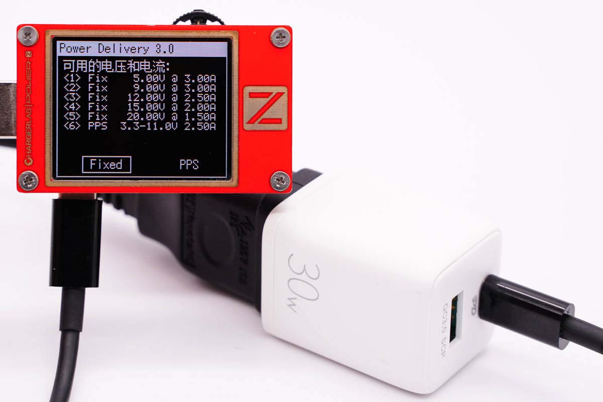 另外使用KT002测得USB-C口相对于A口,还额外支持PD3.0、PPS快充协议。
