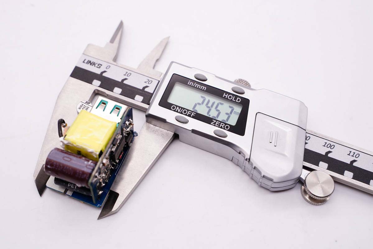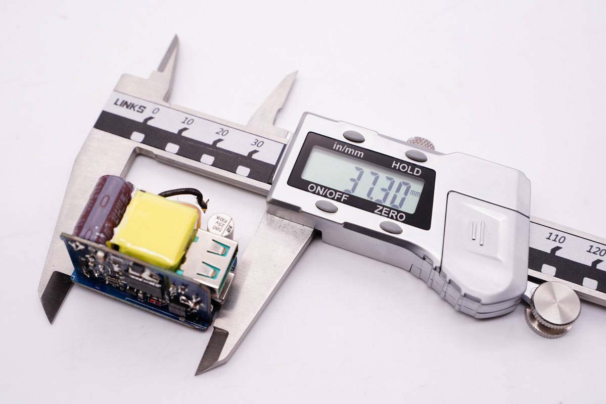 使用游标卡尺测得PCBA模块长度为37.3,mm。