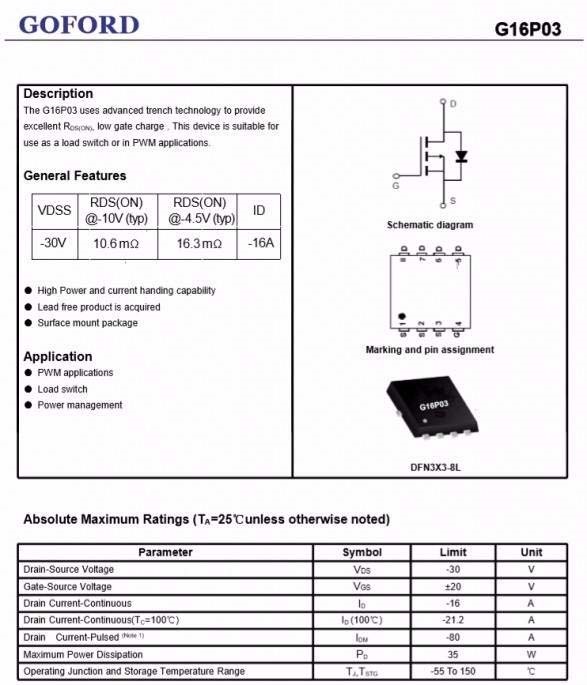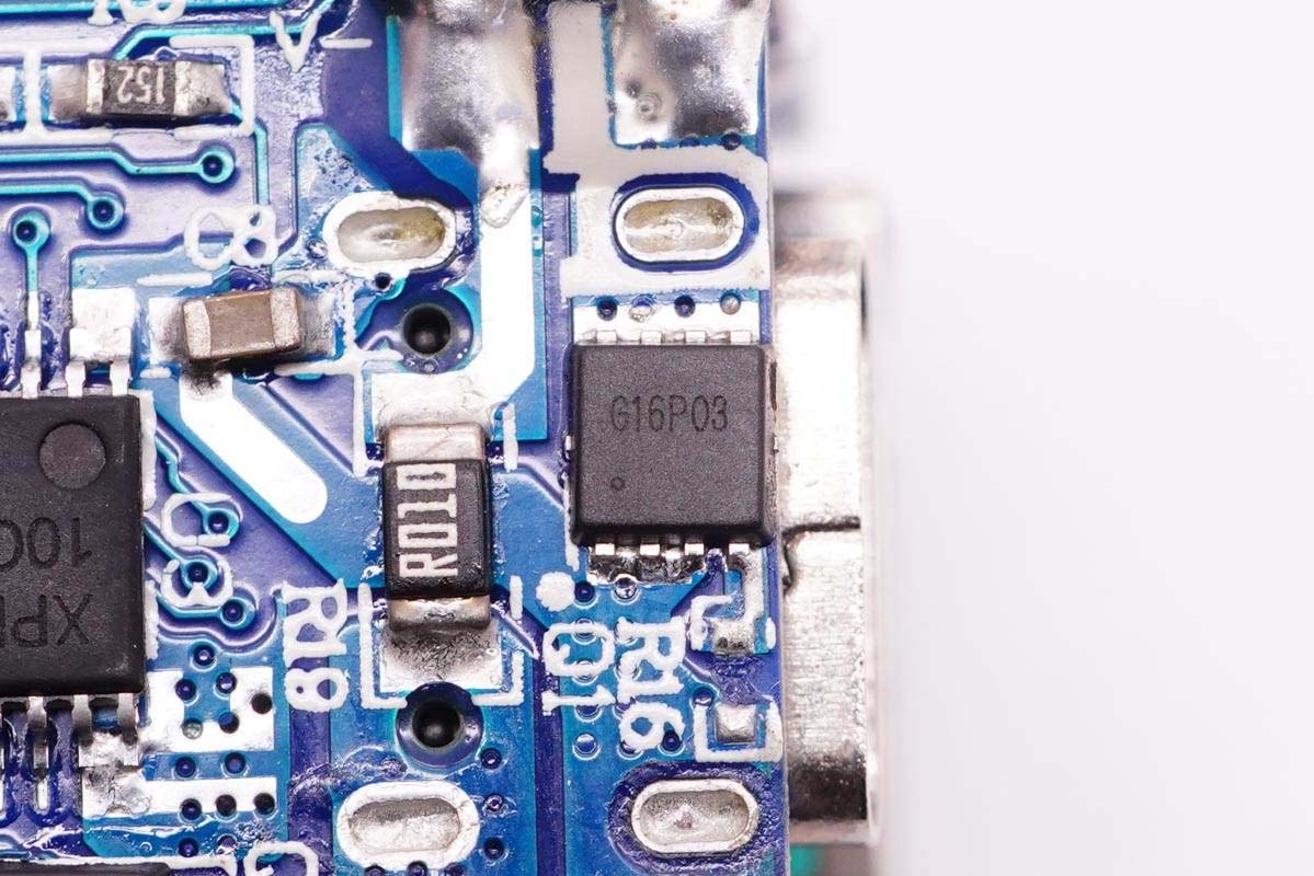 输出VBUS开关管采用谷峰G16P03,PMOS管,耐压30V。
