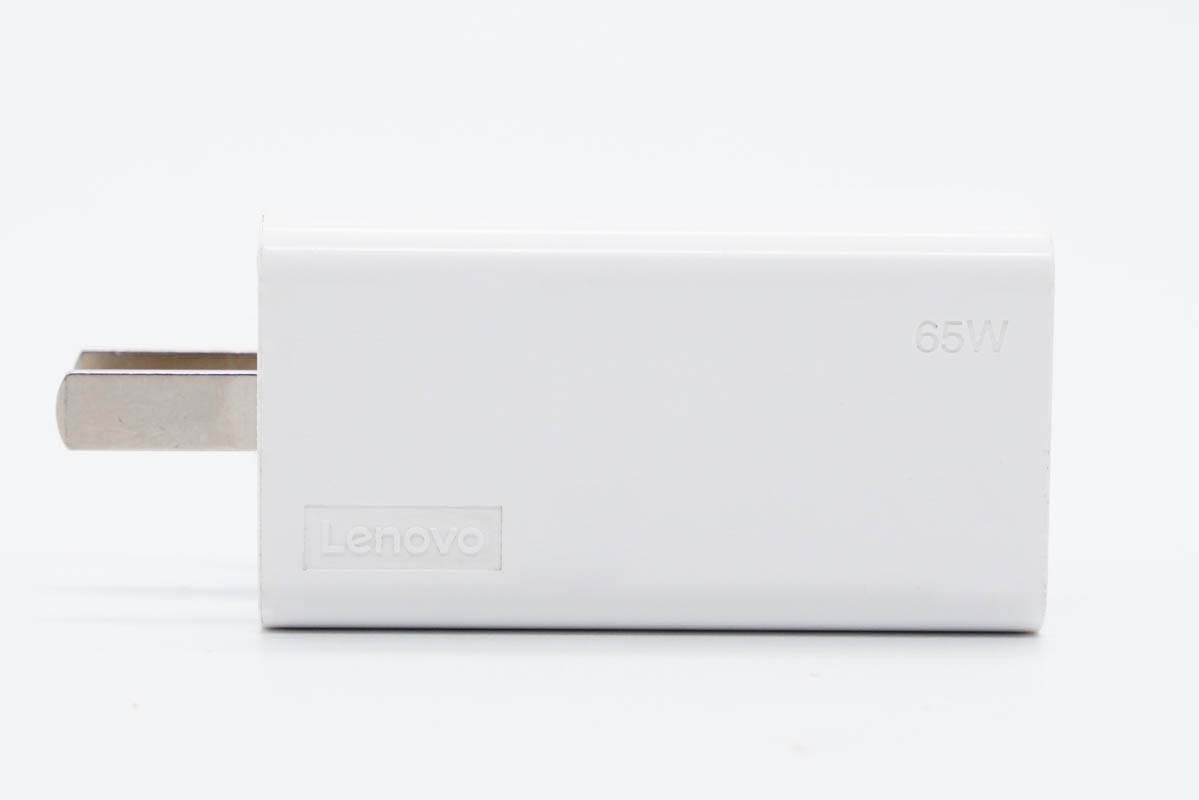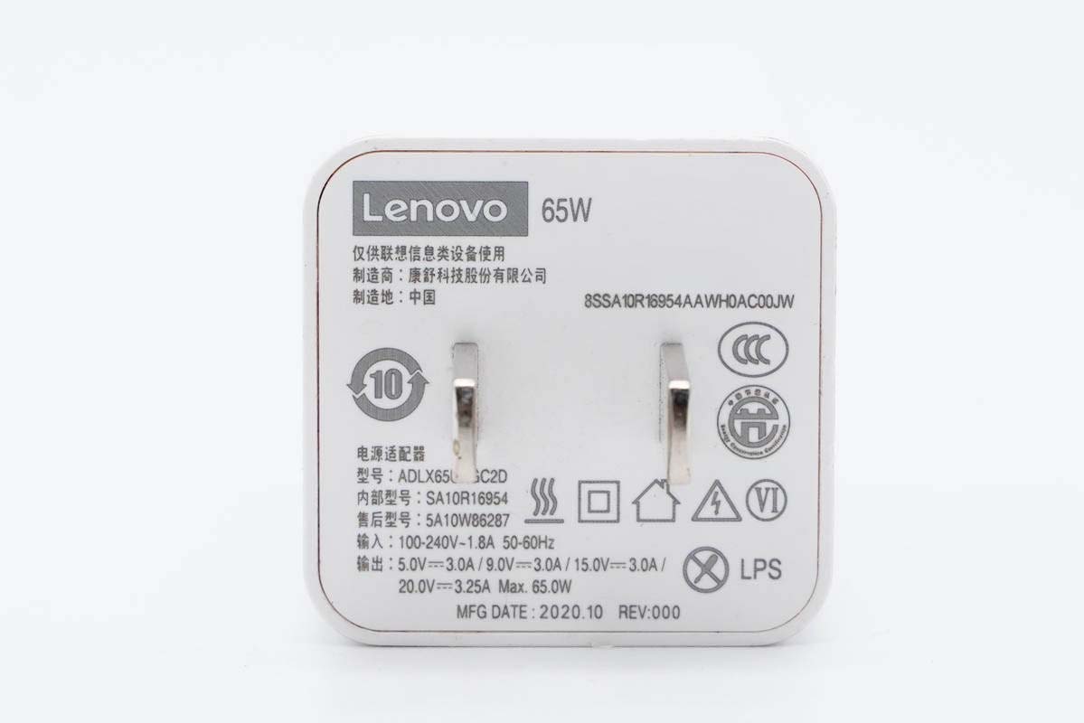 其中一面对角处分别设有Lenovo品牌和65W功率字样。