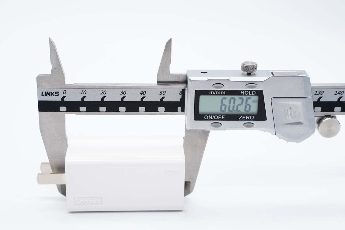 使用游标卡尺实测充电器机身长度为60.26mm。