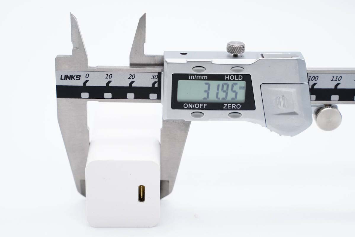 厚度为31.95mm。通过三维可以算得充电器体积约为63.42cm³,功率密度约为1.02W/cm³。