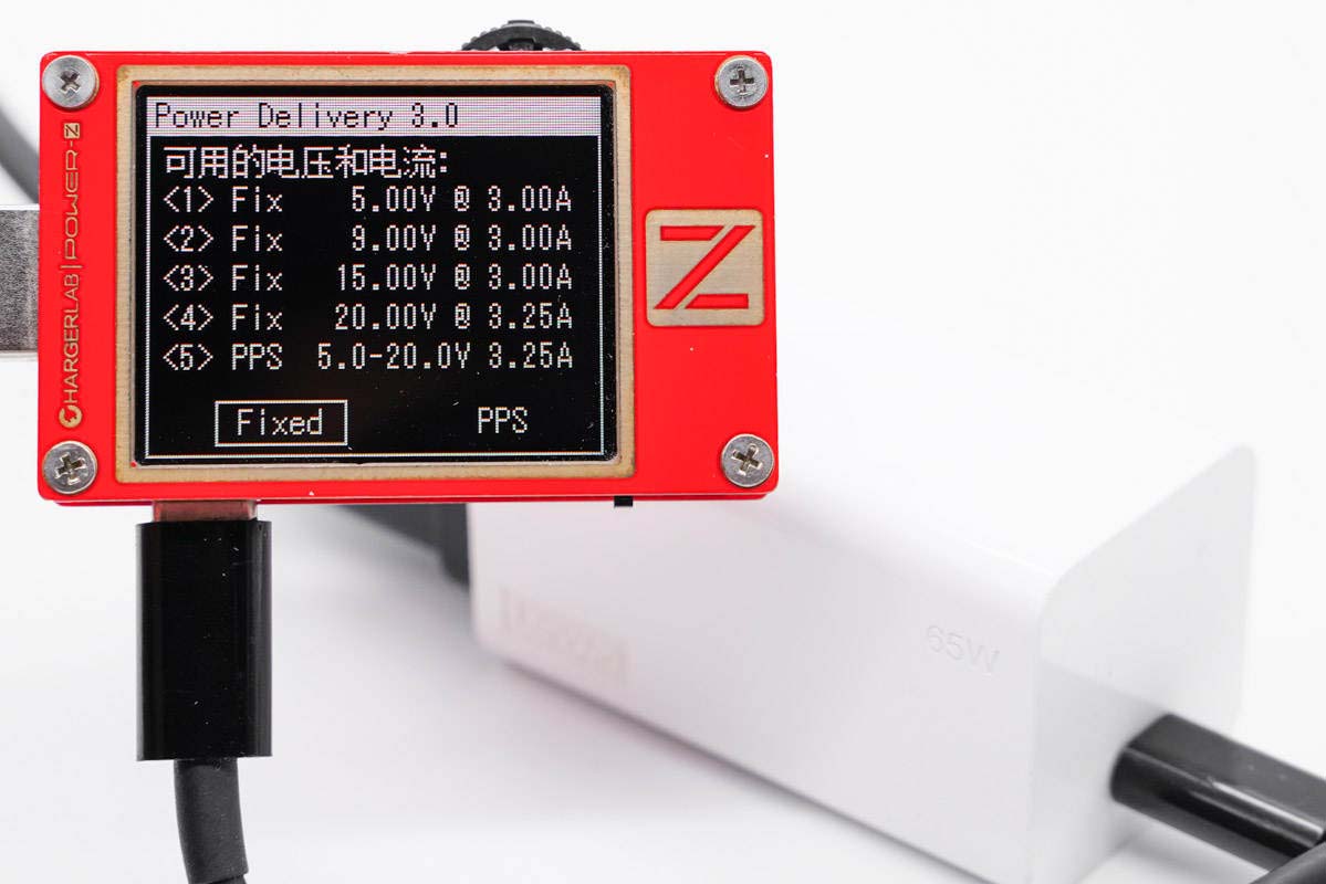 此外PDO报文显示C口还具备5V3A、9V3A、15V3A、20V3.25A四组固定电压档位,以及5-20V3.25A一组PPS电压档位。